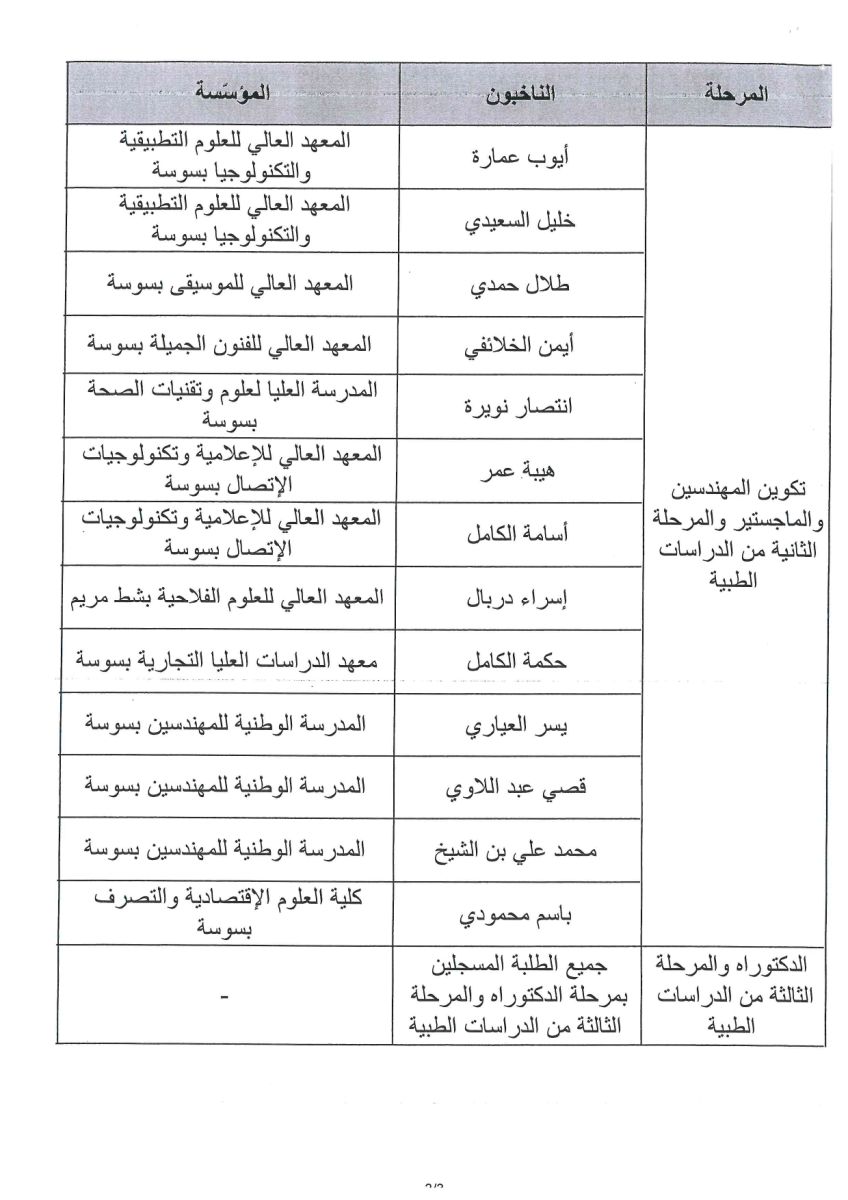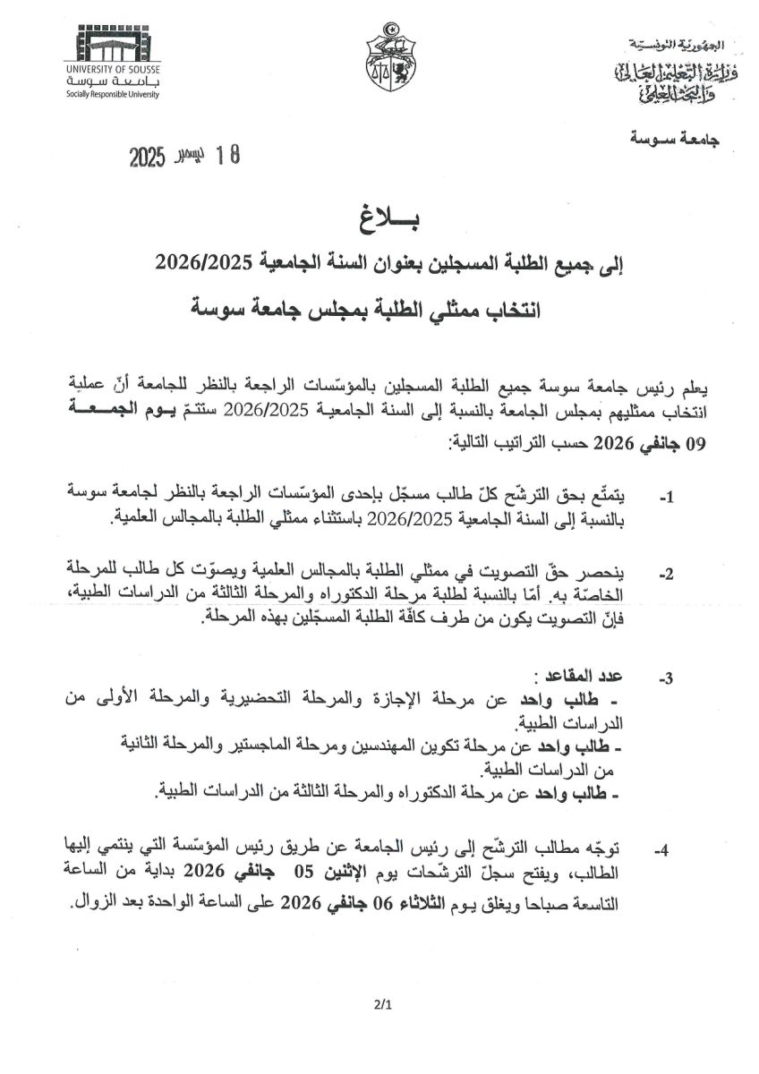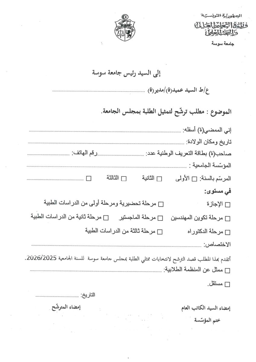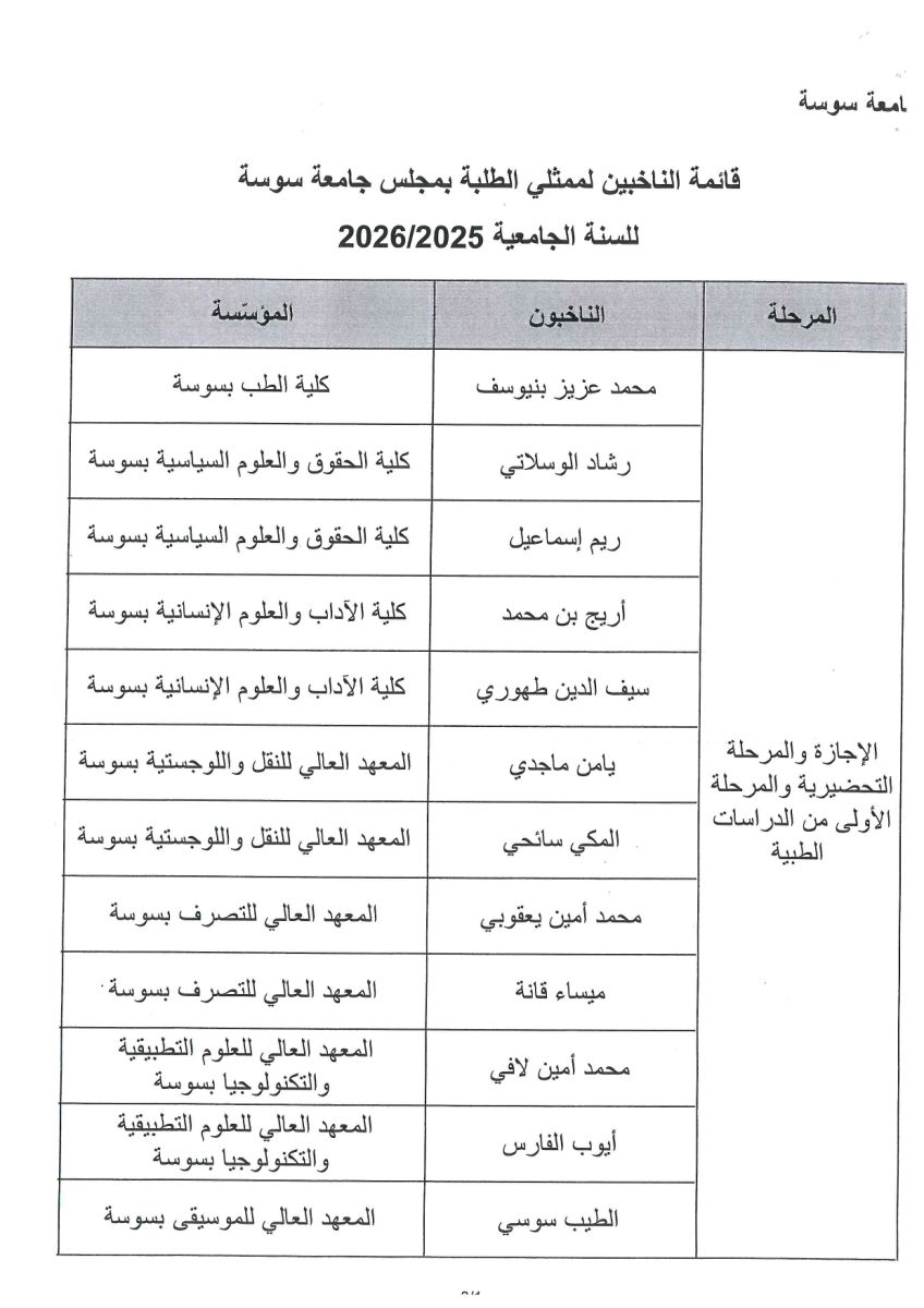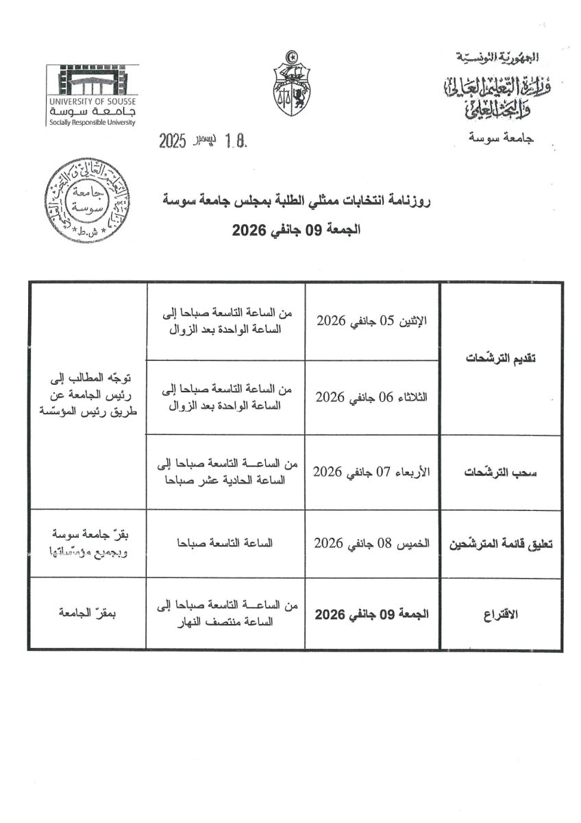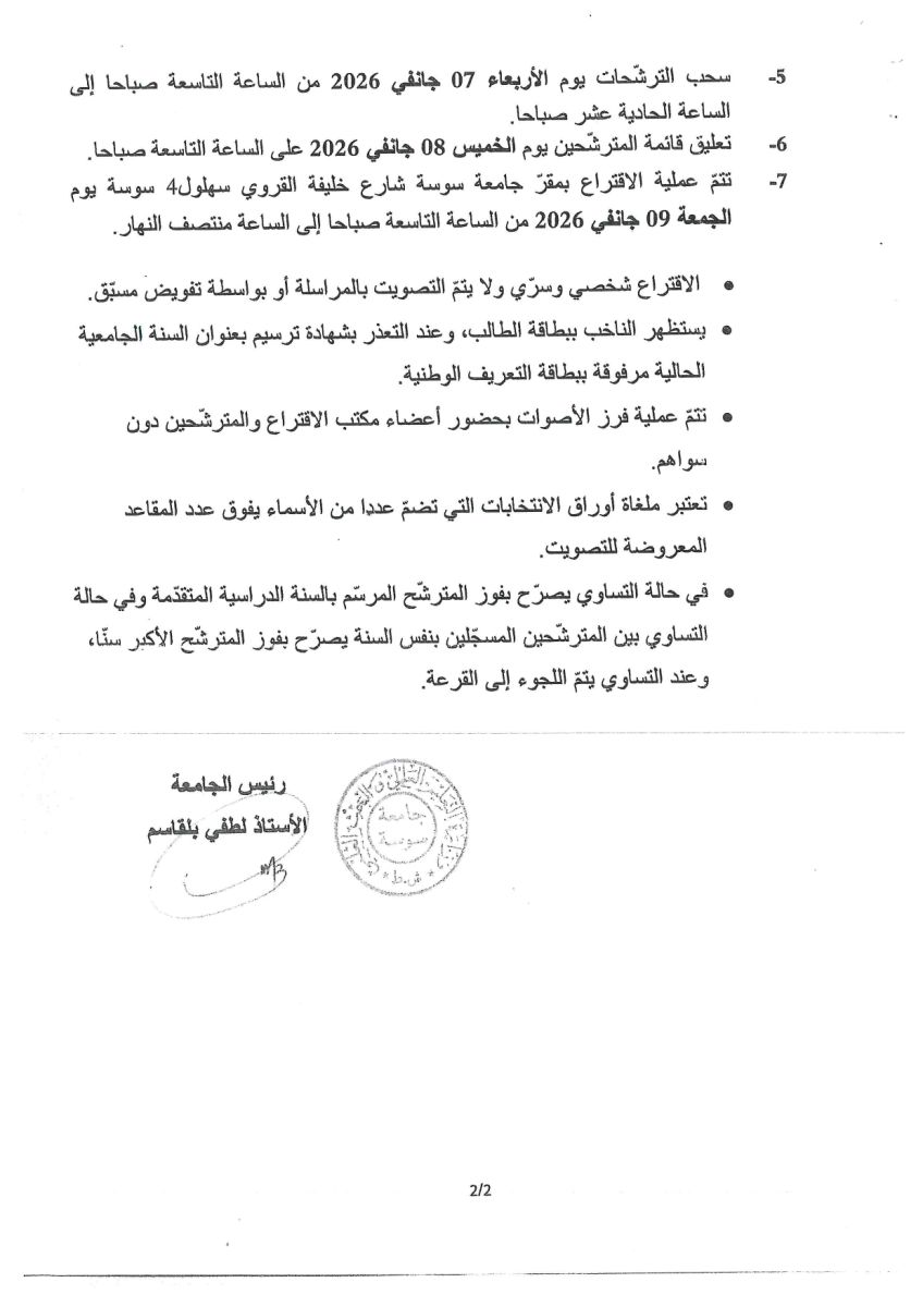 انتخابات ممثلي الطلبة بمجلس جامعة سوسة