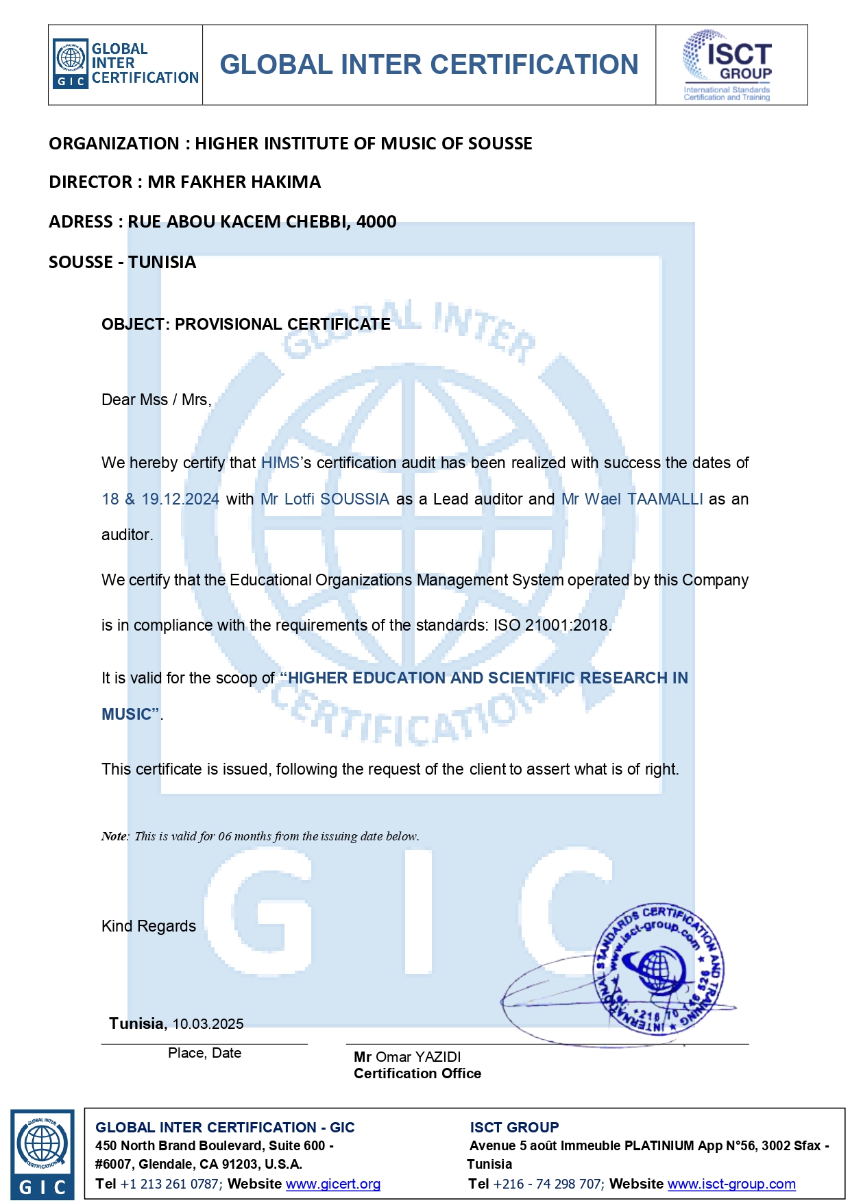 Certification ISO