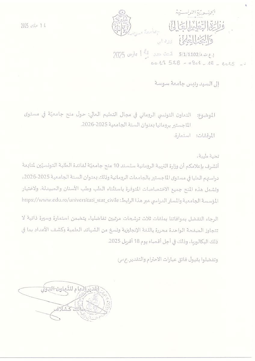حول منح جامعية في مستوى الماجستير برومانيا