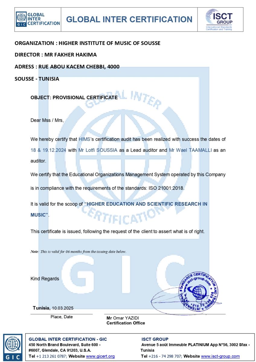 L'ISM de Sousse se met au Diapason de l'ISO 21001