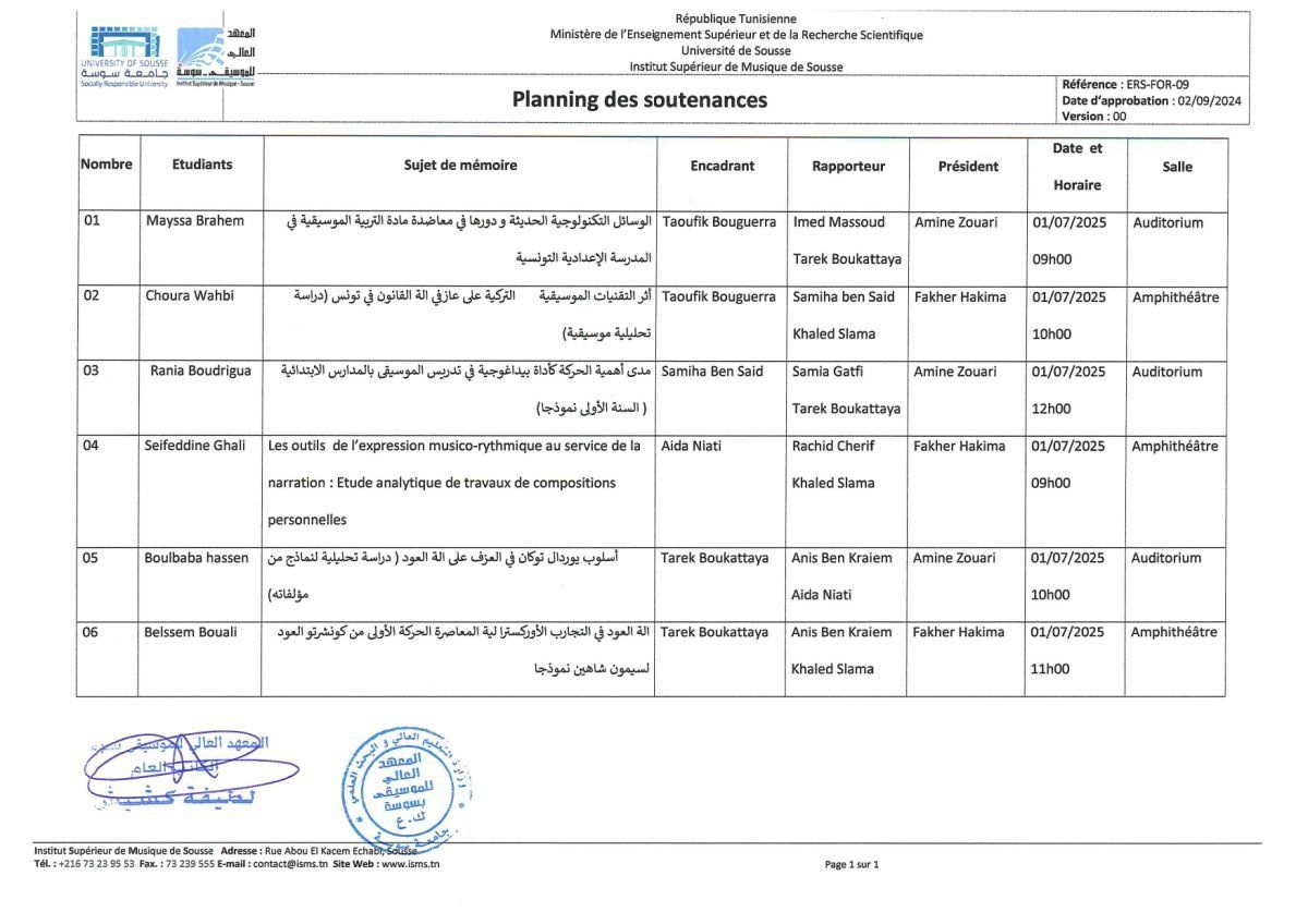Calendrier Soutenances
