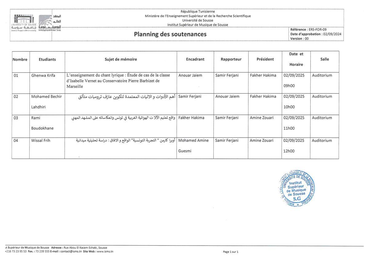 رزنامة عروض التخرج للسنة الثانية ماجستير
