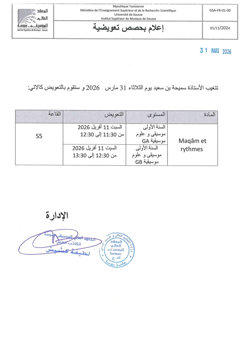 إعلام بحصص تعويض السيدة سميحة بن سعيد